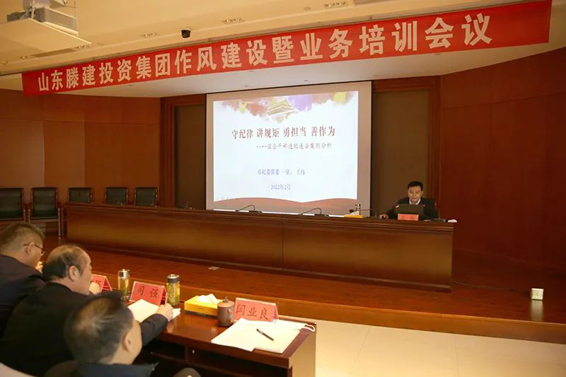 2月8日,作風建設暨業務培訓活動開展第一天,集團特邀滕州市紀委監委第一紀檢監察室主任王偉;棗莊市委講師團教研室主任、教授王輝進行專題授課。王偉主任以《國企干部違紀違法案例分析》為題,對當前反腐敗的形勢進行了深入講解,引用大量具體案例,分析了各類違紀違法形成原因,并勉勵集團干部職工在“守紀律、講規矩、勇