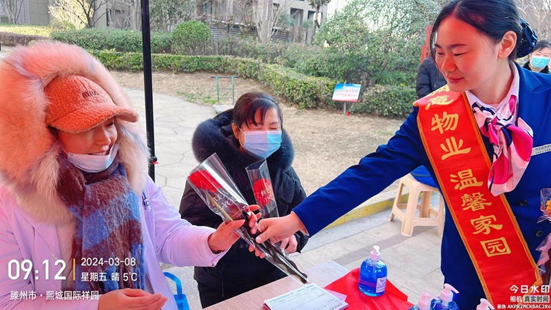 熙城國際誠園、東城名景、人和藍灣、滕投華府、大同印象多個物業(yè)服務中心開展了“溫馨滿溢、鮮花獻女神”活動,為女性業(yè)主和住戶們獻上了節(jié)日的鮮花,表達對她們的敬意和祝福。
